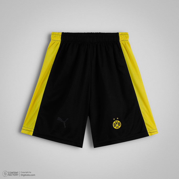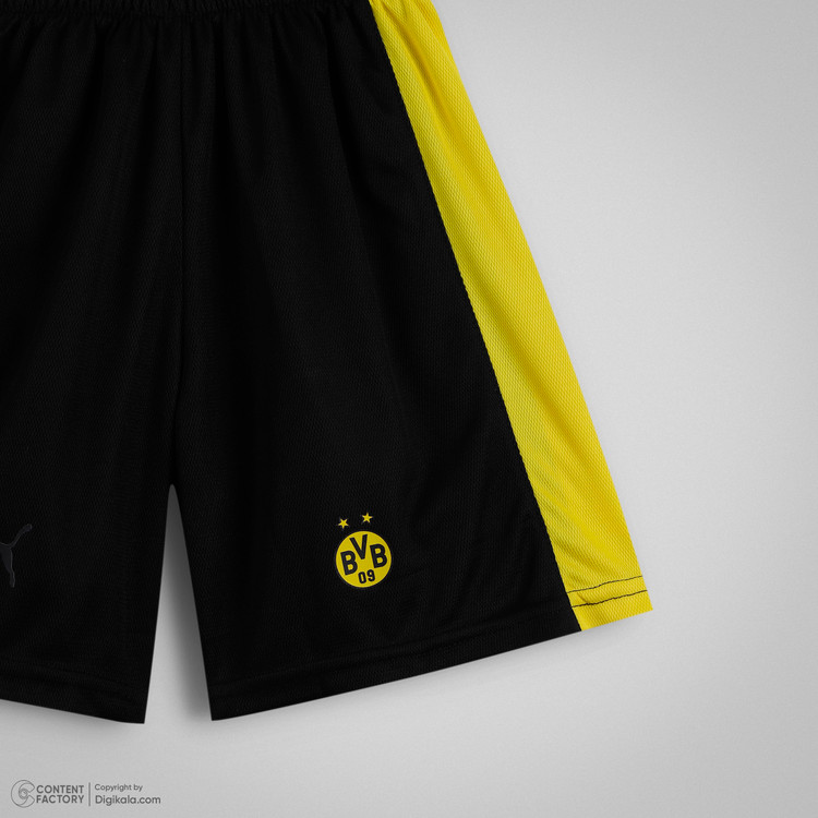 لوگوهای پوما و باشگاه دورتموند با دقت بالا روی پارچه اجرا شدهاند تا در اثر شستشو یا فعالیتهای شدید دچار آسیب نشوند. شلوارک مشکی این ست دارای خطوط زرد جانبی است که با تیشرت هماهنگی کامل داشته و استایلی کاملاً مشابه لباسهای حرفهای فوتبال ایجاد میکند.